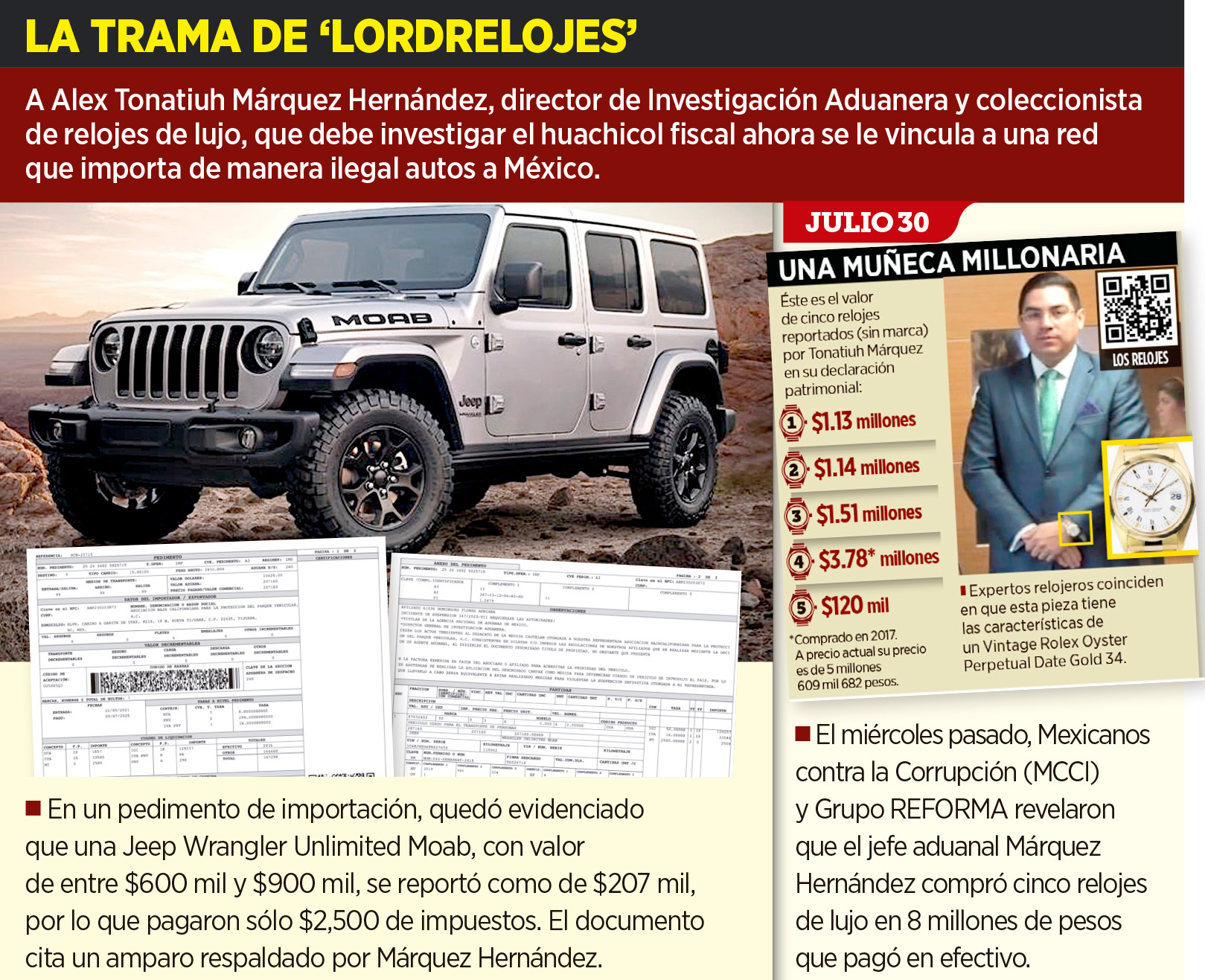 La semana pasada, la organización Mexicanos Contra la Corrupción y la Impunidad (MCCI) reveló que Márquez Hernández presume en su declaración patrimonial una colección de relojes de lujo con valor de 7.7 millones de pesos.