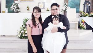 Fue el padre Jesús Alberto Guevara Chapa quien ofició la ceremonia y bendijo a la pequeña en su ingreso a la familia católica.