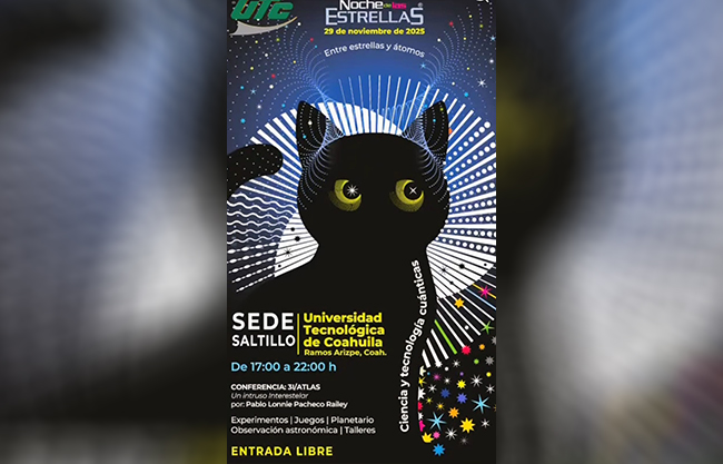 Saltillo, Coah.- La Universidad Tecnológica de Coahuila (UTC) anunció que hoy, de 17:00 a 22:00 horas, será sede de la Noche de las Estrellas 2025, uno de los eventos de divulgación científica más importantes del país.