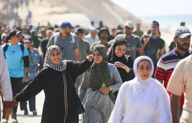 Con la entrada en vigor del cese el fuego anunciado por el ejército israelí a las 09:00 GMT, decenas de miles de palestinos desplazados empezaron una penosa marcha desde el sur de la Franja de Gaza hacia el norte para volver a sus hogares.