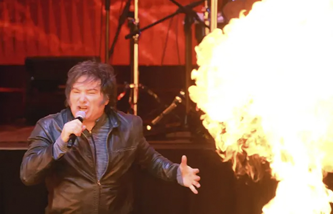 Al mediodía del lunes, Milei transmitió por Instagram imágenes de la prueba de sonido de su banda, integrada por economistas cercanos, y cantó: “Soy el más liberal, no me podés pisar porque soy capitalista”, modificando la letra de Tu vicio, del rockero argentino Charly García.