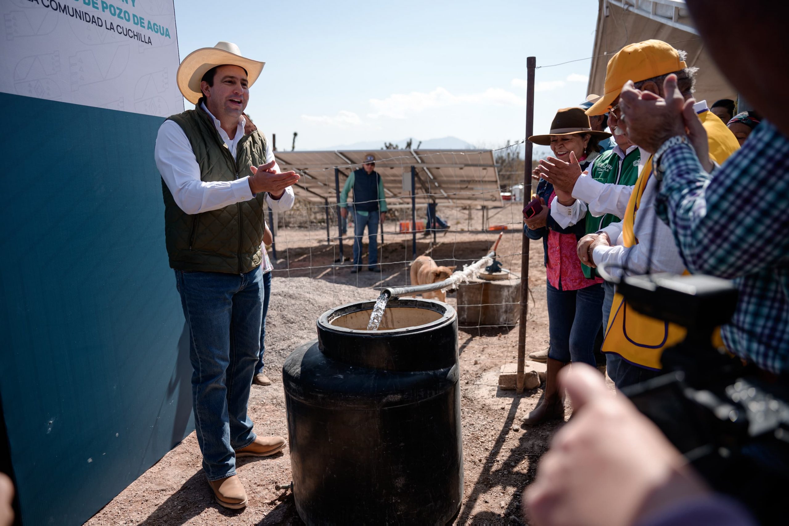 Este sábado, Díaz González acudió a la localidad de La Cuchilla, anexa al ejido San Juan del Retiro, donde hizo entrega de la rehabilitación y equipamiento del pozo de agua.