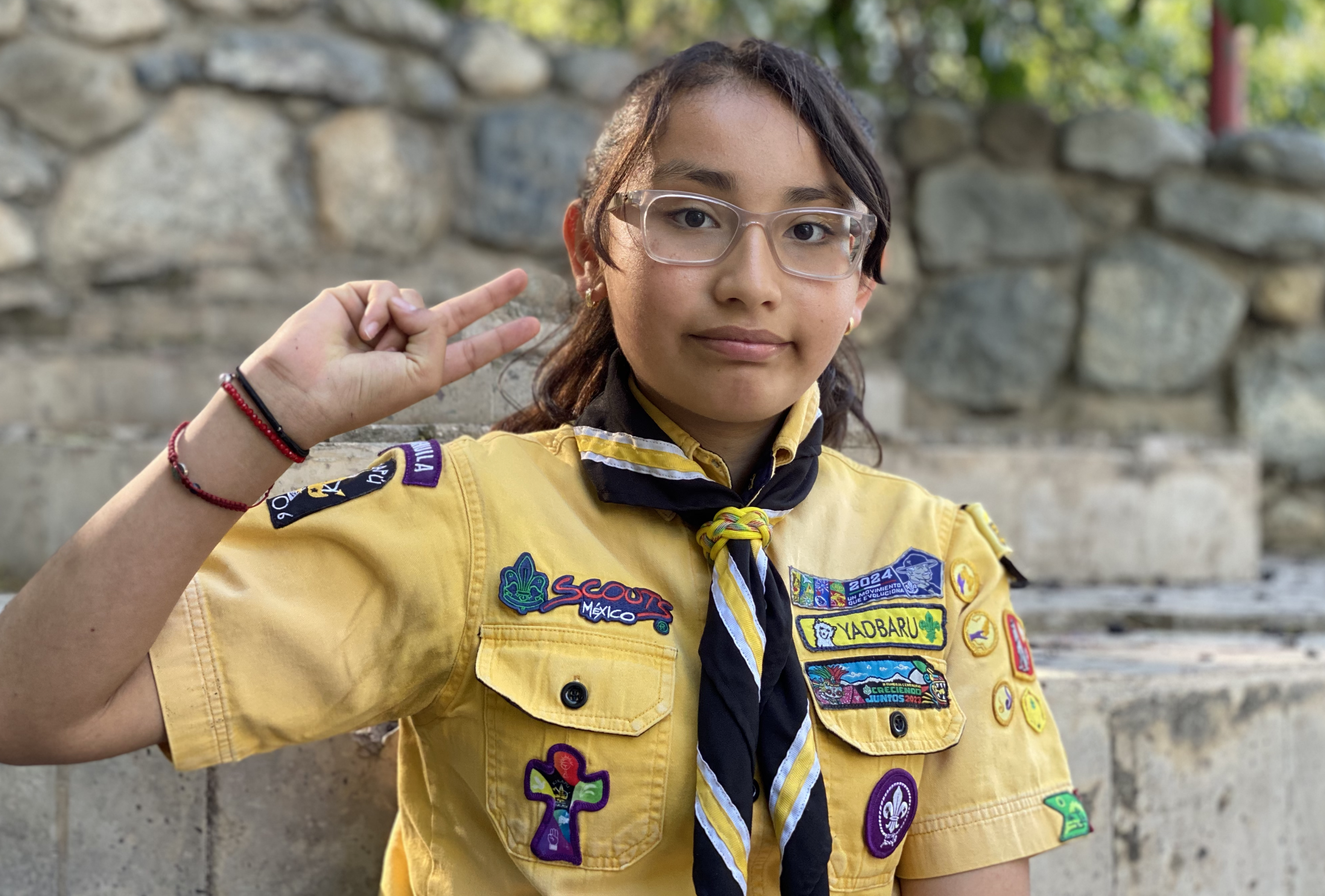 Aquí está Sofía, de 13 años de edad, que ya tiene la mitad de su vida siendo parte de los Scouts.