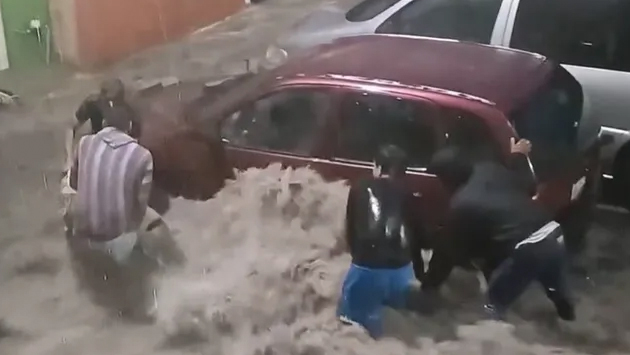 La inundación superó los 30 centímetros de altura, lo que impide el paso de los ciudadanos, incluso para quienes viajan en vehículo.