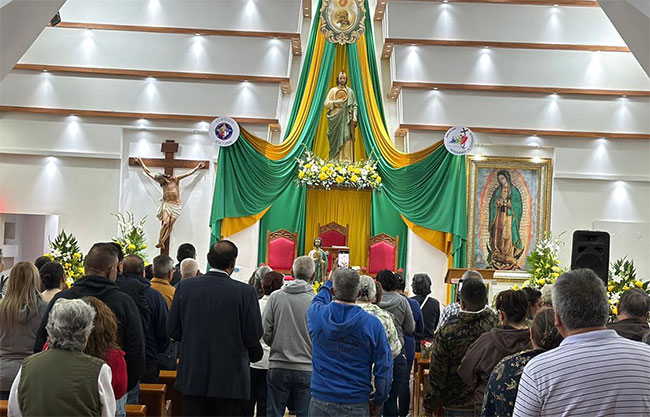 Saltillo, Coah.- Fieles católicos llegaron en una procesión a las 06:30 horas de este martes al templo de San Judas Tadeo, lanzando pirotecnia al aire para anunciar el inicio de las festividades.