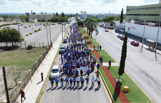 El edil junto a su hija Karina Ríos Ornelas encabezaron el recorrido partiendo de las instalaciones de la Escuela Superior de Ingeniería “Adolfo López Mateos”, hasta llegar a la explanada de la secundaria Fortunato Gutiérrez Cruz, donde se desarrolló una actividad de sensibilización.
