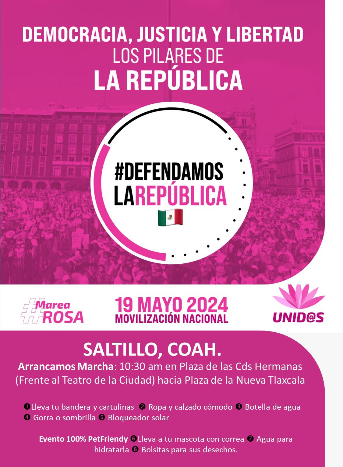 En un esfuerzo unificado para fortalecer los valores democráticos y defender los pilares de nuestra república, se anuncia la convocatoria a una marcha cívica sin precedentes. Bajo el lema “Defendamos la República”, ciudadanos comprometidos se darán cita el próximo 19 de mayo para expresar su apoyo a la democracia y la justicia y su desacuerdo con el gobierno federal.