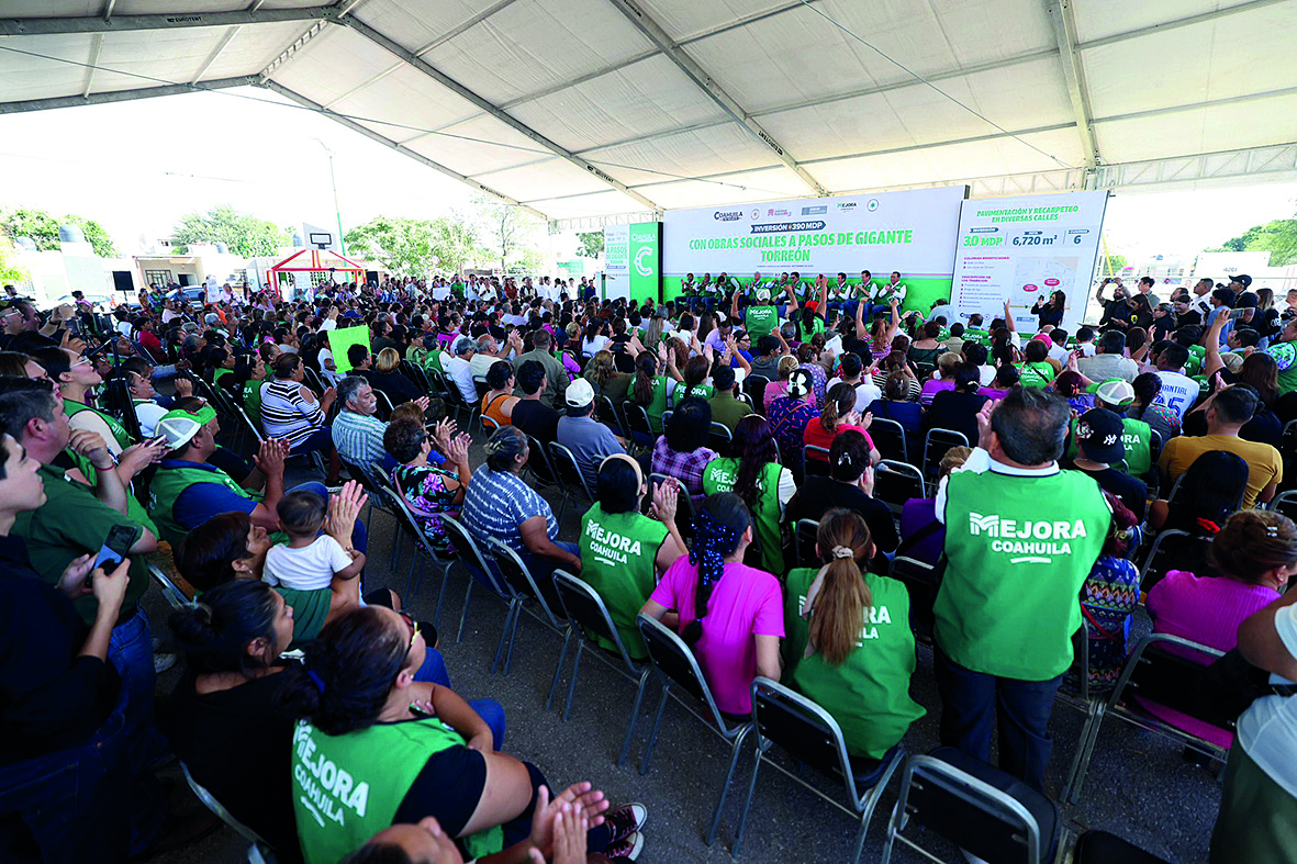 No hay poder humano, fuerza política que tenga la capacidad de dividirnos y mermar a nuestro estado, por eso juntos somos invencibles, y por eso, hoy Coahuila es el mejor estado de todo México para vivir con nuestras familias”, puntualizó. “Iniciamos nuestra gira por La Perla de La Laguna, dando arranque al gran programa de Obras Sociales a Pasos de Gigante, con una inversión de 390 millones de pesos para fortalecer la infraestructura al interior de nuestras colonias y barrios de Torreón”, destacó.