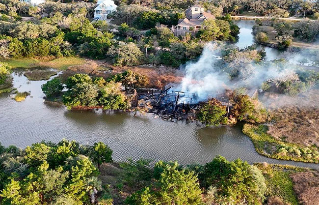 Debido a que la casa tenía el primer piso elevado, los heridos tuvieron que lanzarse al suelo, y varios fueron rescatados en kayak desde el pantanoso patio trasero, según informaron los bomberos. Videos y fotos de drones mostraron la vivienda reducida a escombros carbonizados.