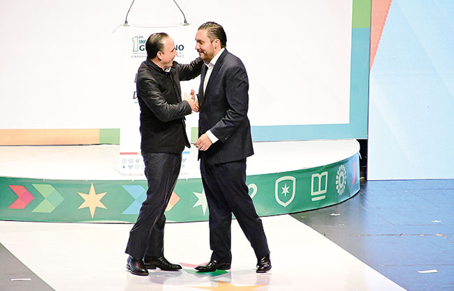 “Hace un año nos propusimos a arrancar el motor del cambio, dijo el alcalde Carlos Villarreal, ayer al rendir su Primer Informe de Gobierno en el teatro que lució lleno de personas que llegaron para escucharlo.