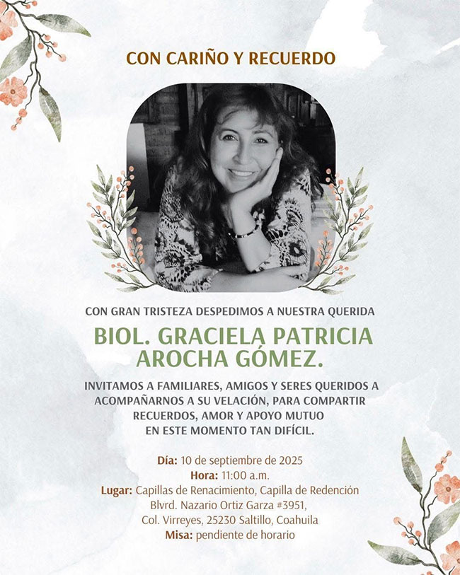 Saltillo, Coah.- Bióloga de profesión, ambientalista de corazón, solía decir Graciela Arocha para describir su amor por el bosque, la sierra, su flora y su fauna.