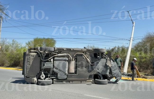 Saltillo, Coah.- Una conductora que iba acompañada de su bebé, volcó luego de que chocó y derribó un poste de energía eléctrica, al norte de Saltillo.