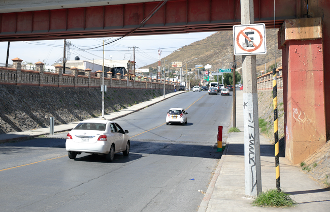Saltillo.- El semáforo pluvial instalado en la calzada Francisco I. Madero en el deprimido ubicado frente al Parque Hundido, fue dañado por un vehículo.