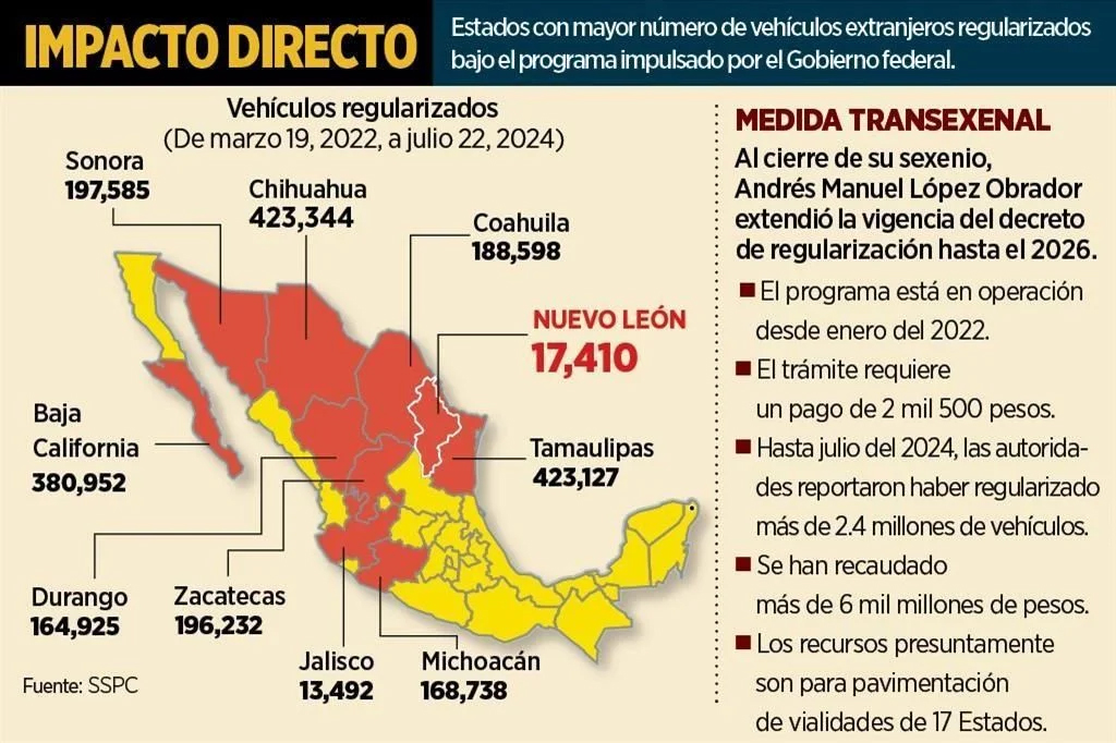 Según las autoridades, entre el 2022 y el 2024 se regularizaron 2 millones 174 mil 403 vehículos.