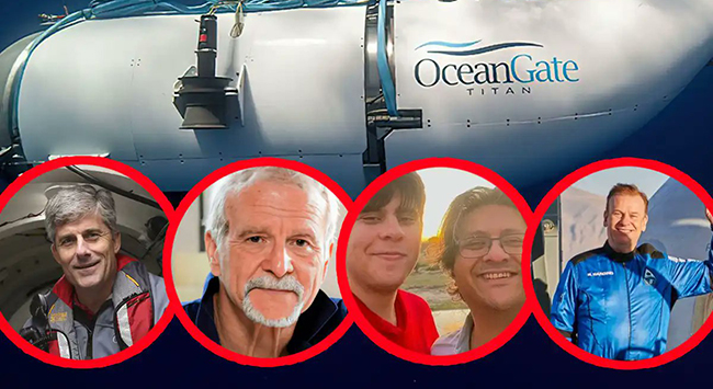 En el sumergible viajaban el empresario paquistaní Shahzada Dawood con su hijo Suleman, estudiante de 19 años; el explorador británico Hamish Harding; el explorador francés Paul-Henry Nargeolet y el consejero delegado de la firma OceanGate, Stockton Rush.