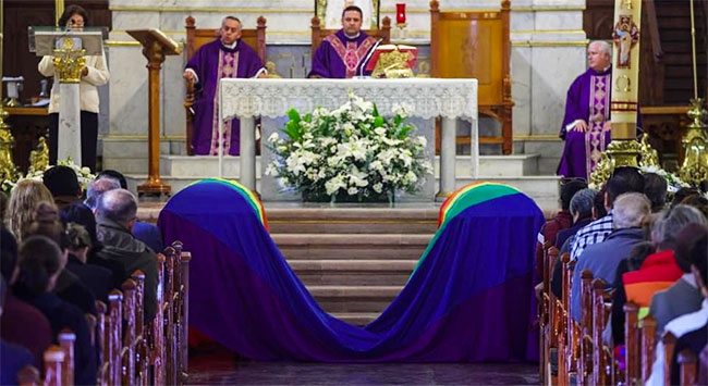 Jesús Ociel y su presunto asesino fueron velados juntos y llevados a la Catedral de Aguascalientes para la misa de exequias. Allí el padre del saltillense señaló que nadie cree la versión de la Fiscalía.