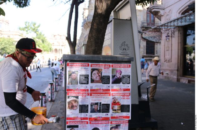Posteriormente se dividieron en grupos y empezaron a pegar en los bolardos de Ramón Corona y Juárez, donde usuarios de la Vía Recreactiva observaban y lamentaban la crisis de desapariciones que vive el Estado.