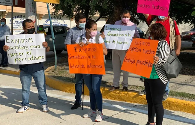 Uno de los oradores del encuentro destacó que “hemos denunciado desde hace tiempo que en la mayoría de los 85 municipios de la entidad, existen lo que hemos denominado ‘zonas silenciadas’, donde ya no se puede reportear, no hay periódicos, ni revistas”.