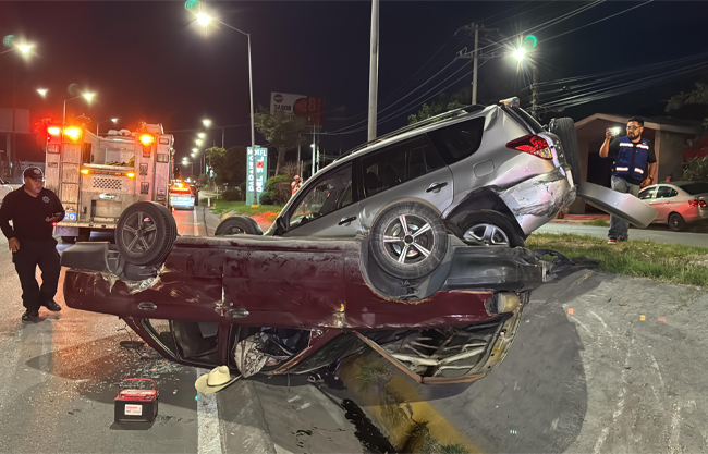 Tras la colisión, el Nissan quedó volcado, por lo que automovilistas auxiliaron a la pareja la cual refirió no haber sufrido lesiones, sin embargo, fueron valorados por paramédicos del Cuerpo de Bomberos de Ramos Arizpe, pero no fueron trasladados a un hospital.