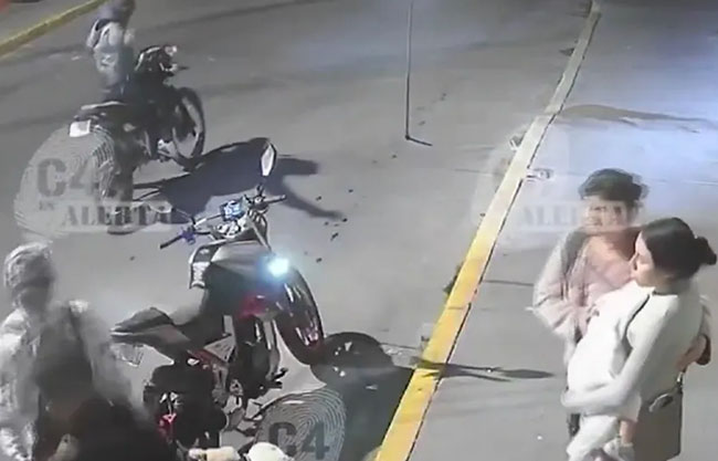 El hombre tarda segundos para cometer este acto ilícito. En ese momento, las personas que acompañan a la víctimas quedan atónitas ante lo sucedido.