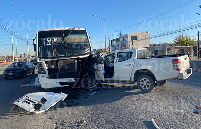 Saltillo, Coah.- Luego de presuntamente quedarse dormido mientras conducía, un hombre causó un accidente en el bulevar Isidro López Zertuche, en el que su camioneta se estrelló de frente contra un camión del transporte público.