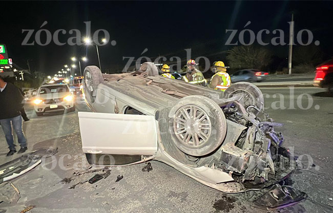 Saltillo, Coah.- Tras dormirse mientras conducía, un joven volcó su vehículo a la altura de la colonia Hacienda San Rafael.
