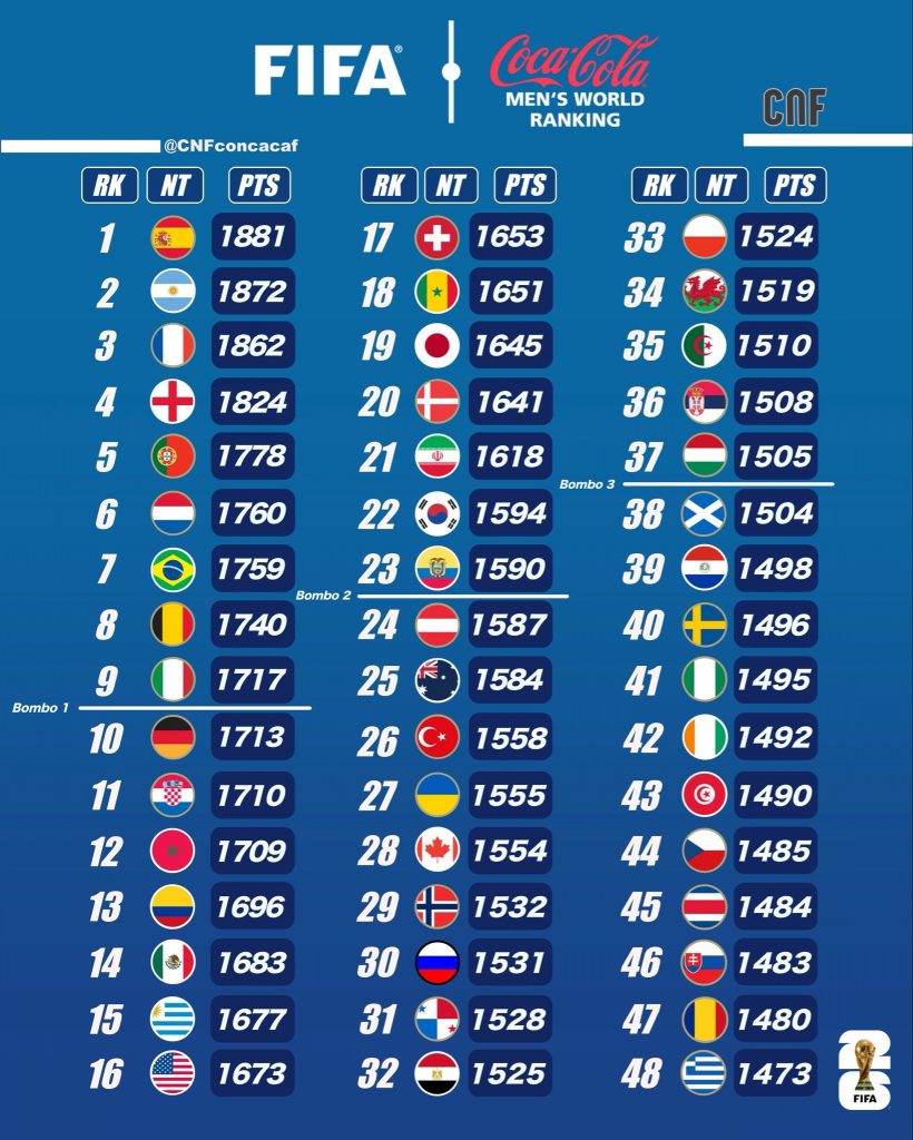 Posiciones del Ranking FIFA de octubre 2025