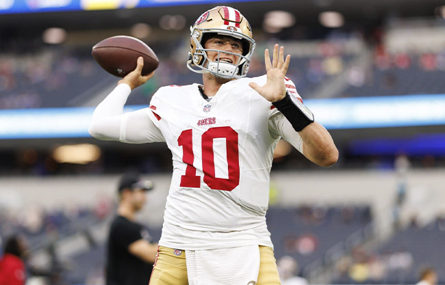 La cuarta titularidad de Jones se produce mientras el mariscal de campo titular Brock Purdy continúa lidiando con una lesión en el dedo del pie que sufrió en la Semana 1 y se agravó en la Semana 4. Purdy no entrenó esta