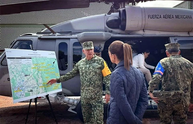 En un mensaje previo a su salida, Sheinbaum informó que desde el viernes se mantiene instalado el Comité de Protección Civil y que las labores de emergencia se centran en abrir caminos, restablecer servicios y atender a la población damnificada.