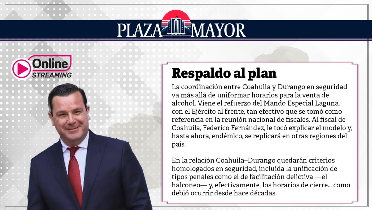 Coahuila mantendrá reportes permanentes de objetivos, intercambio de información, inteligencia y un monitoreo conjunto con la Federación. El modelo estatal cayó bien —en toda la extensión— a las nuevas autoridades de la FGR. Con eso queda dicho: la estrategia federal y la estatal van en la misma ruta.