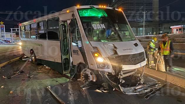 Posteriormente el transporte se estrelló contra una luminaria y quedó atravesado en los carriles opuestos, bloqueando la circulación vehicular y generando largas filas.