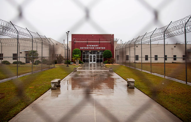 El Centro de Detención Stewart fue construido originalmente como una prisión estatal en la década de 1990 y fue adquirido por la empresa privada CoreCivic en 2006, convirtiéndose en una instalación de ICE. Aunque la migración es un asunto civil, Stewart posee las características amenazantes de una cárcel: celdas, guardias con esposas y salas de visita donde el contacto se limita a teléfonos fijos separados por un vidrio.
