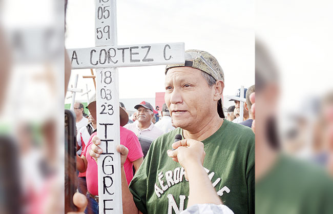 Monclova, Coah.- “Esta marcha va por todos los obreros que cayeron en la lucha de encontrar justicia”, así lo dijo Ancelmo Martínez Cano, quien laboró en el BOF de la Siderúrgica Dos de Altos Hornos y quien durante el recorrido de la marcha cargó una cruz con el nombre de uno de sus compañeros que falleció sin que la empresa le finiquitara su salario.