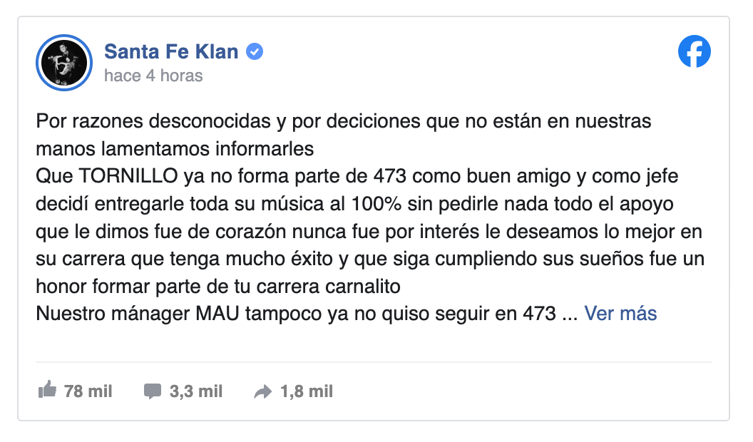 A pesar de la situación, Santa Fe Klan mantuvo un tono amigable hacia sus ex-colegas, recordando los momentos compartidos: “Fue un gusto haber chambeado todo este tiempo juntos, muchos momentos inolvidables”. Con un mensaje final cargado de camaradería, concluyó:
