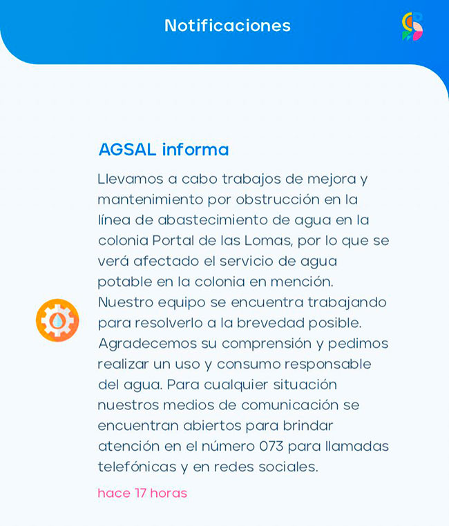 La empresa Agsal le informó a una de las vecinas de ese sector que el servicio se suspendió porque estaban trabajando en varias tuberías que se encontraba tapadas.