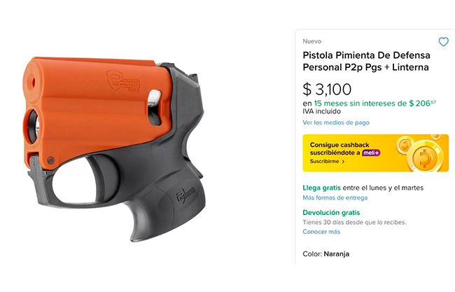 En las páginas de compra y venta de productos como Mercado Libre en México, tienen a la venta este tipo de armas no letales para desfasa personal.