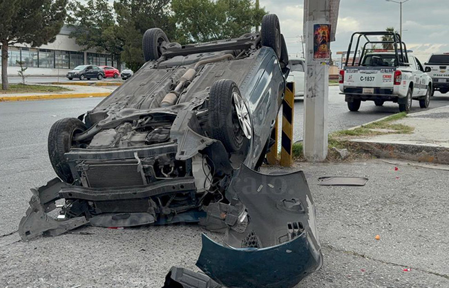 Saltillo, Coah.- Un mecánico y su ayudante quedaron lesionados tras “calar” un automóvil, en el que volcaron sobre Paseo de la Reforma, donde una camioneta les quitó el paso.